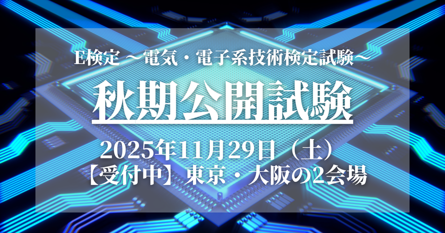 E検定 ~電気・電子系技術検定試験~の全分野また基本分野試験を公開試験会場で行います。