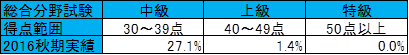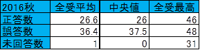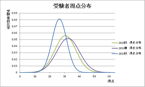 平均値は26.4と前回に比べ、6点低い値です。分布を見ると、前回、前々回に比べ、得点が低い分布になっていることが解ります。総合分野でも平均点が6点低かったことから、基本3分野が、今回は難しかったと言えるかもしれません。